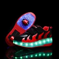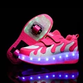 Children Two Wheels Luminous Glowing Sneakers Black Red Pink Led Light Roller Skate Shoes Kids Led Shoes Boys Girls USB Charging